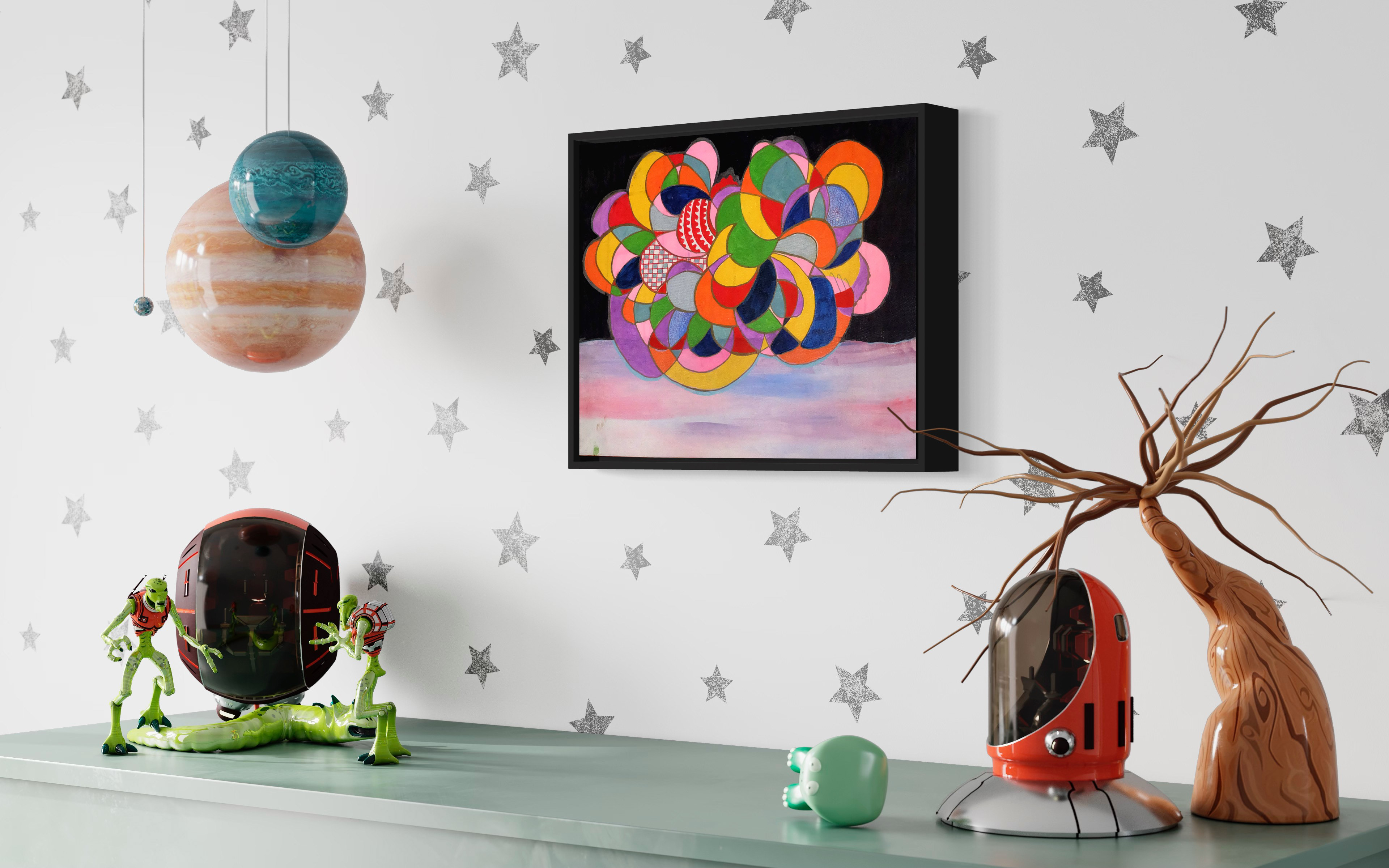 I am thrilled to present my daughter Pia's incredible painting, "Pia Posse Mask." She is a vibrant and creative four-year-old with a beautiful mind. I wish you could hear her articulate the depths of this mask, as it would undoubtedly leave you in awe.