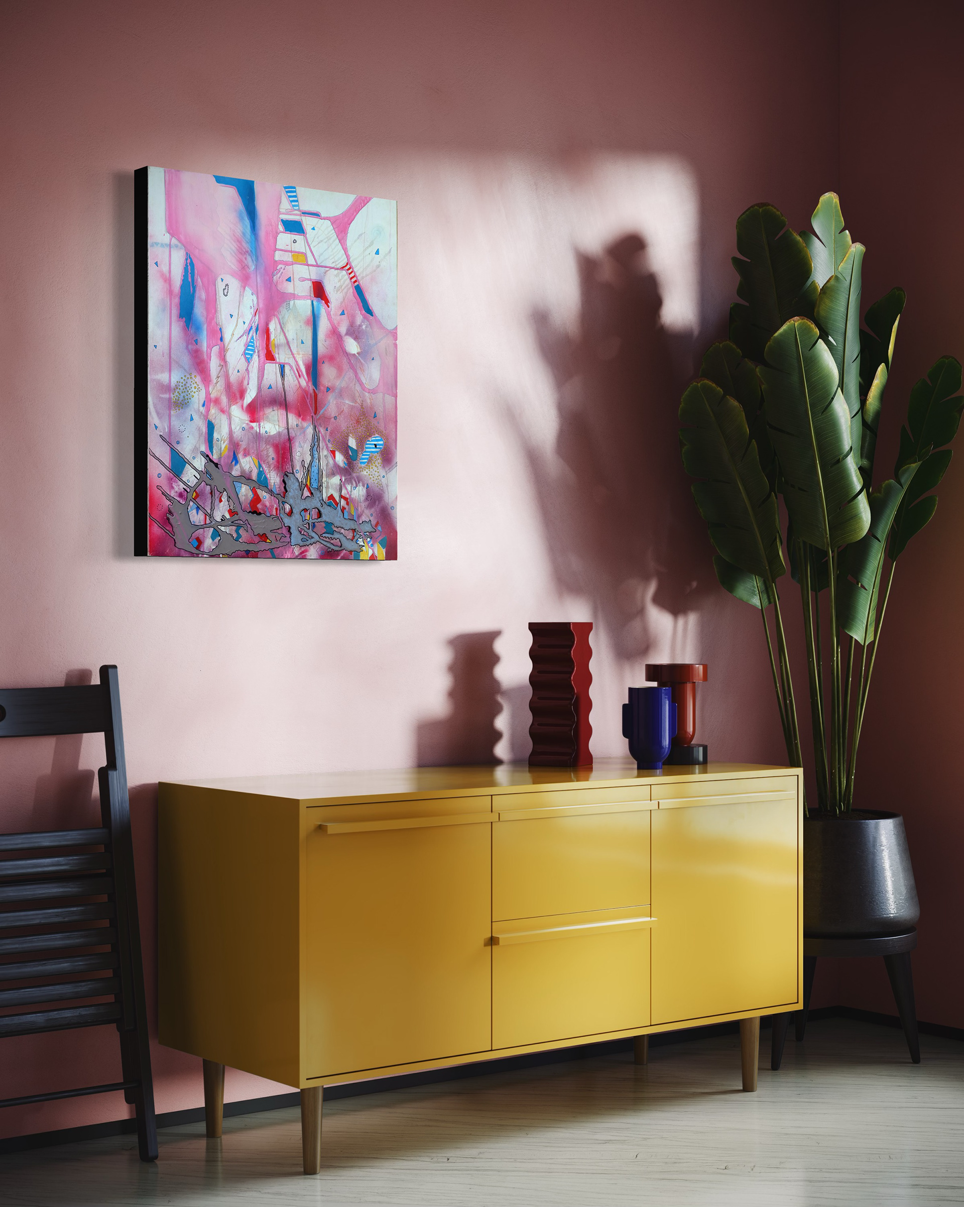 In a dazzling spectacle, twin canvases adorned with the vibrant hues of tiger's blood and the ethereal sweetness of cotton candy intertwine, their surfaces transformed into a whimsical tableau reminiscent of fluffy snow. This dynamic duo promises to infuse your mundane walls with an explosion of funky, firecracker-inspired eye candy. Don't miss out on this electrifying addition to your space—grab them now and let your walls dance with joy!